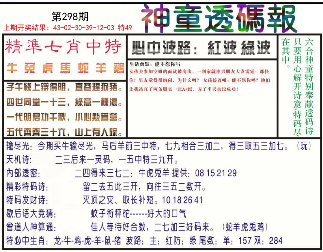 298期:【霸王神算】(⑤肖5 码)独家发表,免费公开✌ |